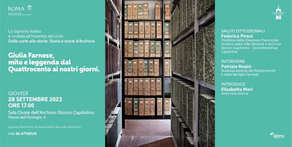 Nell’ambito del ciclo di iniziative Dalle carte alle storie: Storia e storie d’Archivio, il giorno 28 settembre 2023 presso la Sala Ovale dell’Archivio Storico Capitolino avverrà l’incontro